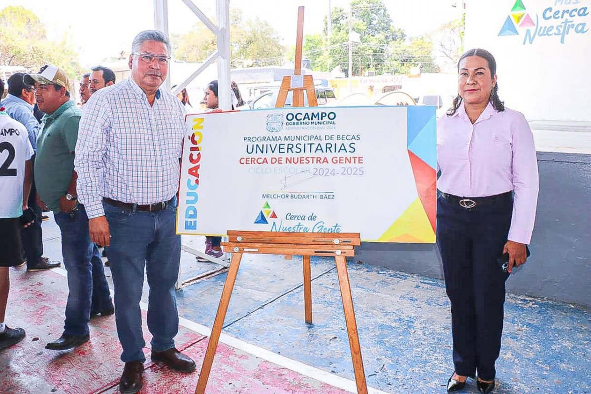 El Presidente Municipal C.P. Melchor Budarth Báez, junto a su esposa C.P. Martha Uresti de Budarth y miembros del Cabildo, llevó a cabo la reactivación del Programa de Becas Municipales, beneficiando a más de 80 estudiantes de nivel superior que con esfuerzo y dedicación buscan superarse.